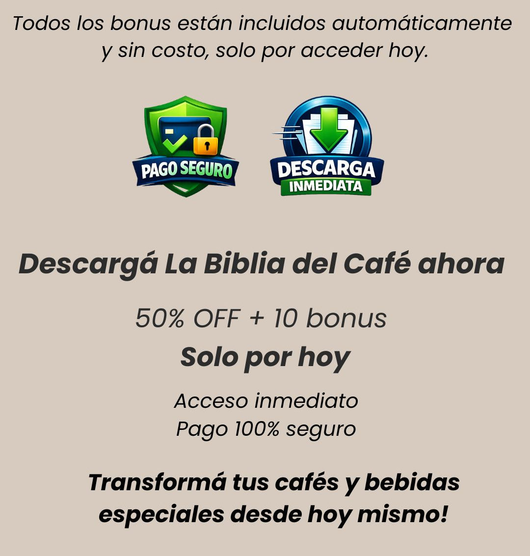 Ese enlace no caduca, por lo que podés descargar La Biblia del Café y sus 10 Bonus cuando quieras, las veces que quieras, y guardarlos en tu computadora,