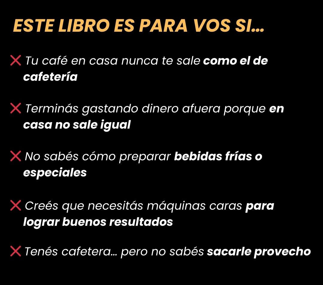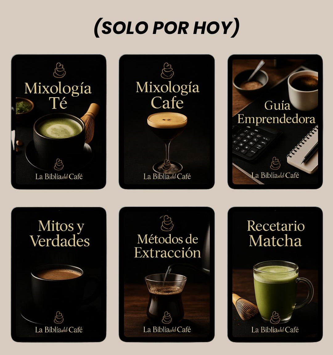 La Biblia del Café reúne en un solo lugar 350 recetas, técnicas reales, métodos profesionales, explicaciones claras y 10 Bonus exclusivos, organizados de forma lógica para que avances paso