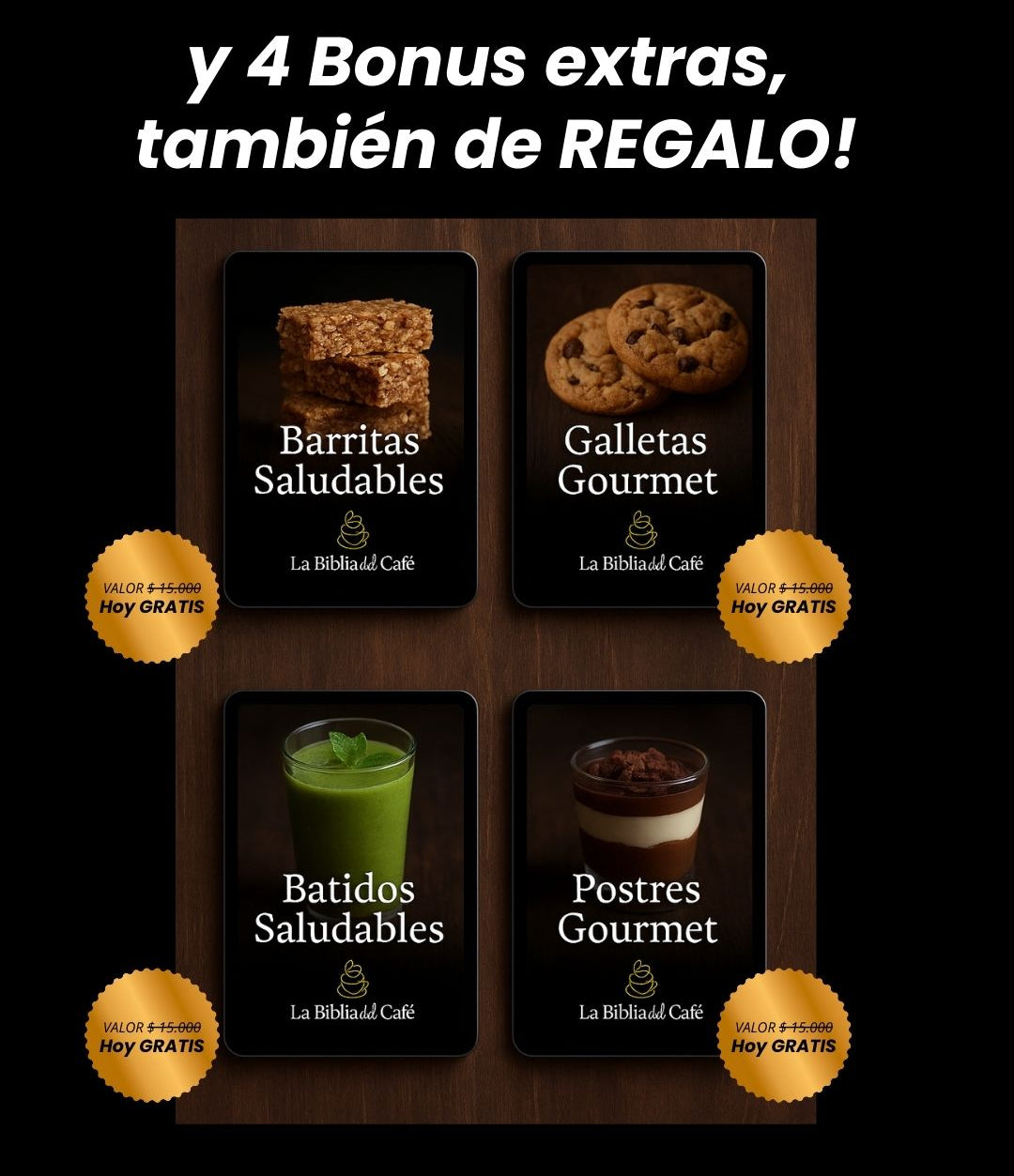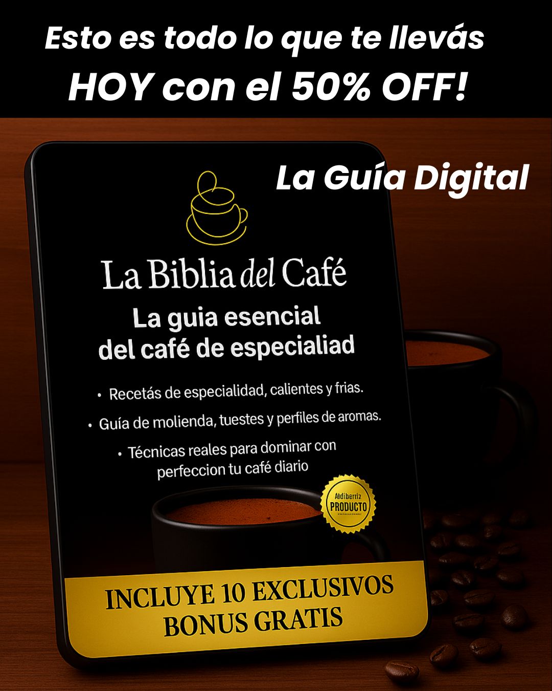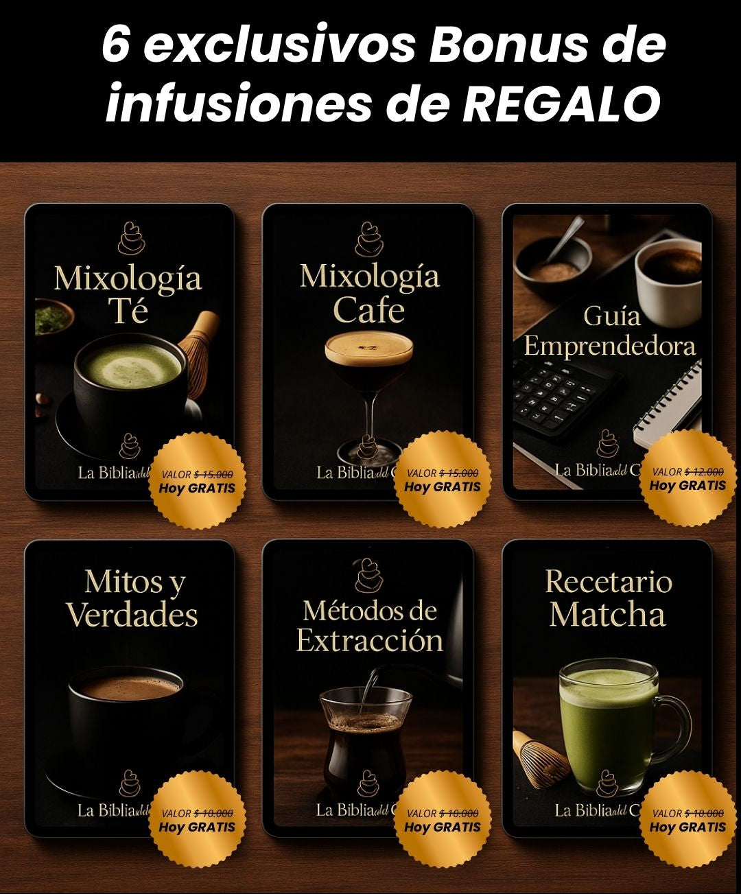 La Biblia del Café reúne en un solo lugar más de 200 recetas, técnicas reales, métodos profesionales, explicaciones claras y 6 Bonus exclusivos, organizados de forma lógica para que avances paso
